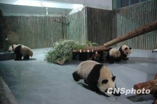 2010年1月5日,由臥龍中國保護(hù)大熊貓研究中心精心遴選的10只“世博熊貓”經(jīng)空運(yùn)抵達(dá)上海,集體搬入上海動物園的新家。憨態(tài)可掬、活潑可愛的“世博熊貓”吸引了眾多關(guān)注的目光。屆時,海內(nèi)外游客在參觀上海世博會的同時還可領(lǐng)略中國大熊貓的風(fēng)采。 中新社發(fā) 阿凱 攝