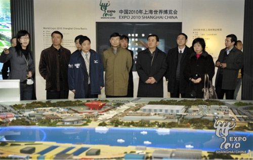 交通部副部長馮正霖一行在上海世博局顧問王秀寶的陪同下參觀世博會(huì)規(guī)劃展示廳
