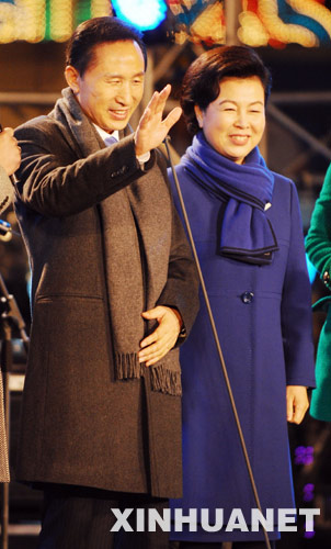 李明博(左)與夫人一起 新華社發(fā)