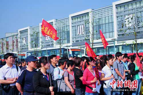 永聯(lián)村民職工“萬人游世博”首發(fā)團(tuán)整裝待發(fā)。李克祥 攝