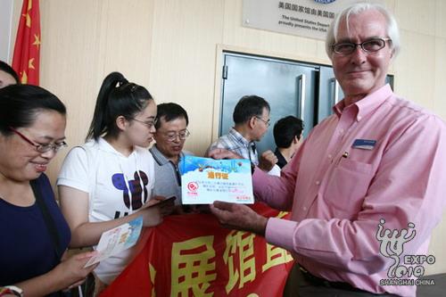 活動(dòng)中,在4位會(huì)說(shuō)中文的美國(guó)館學(xué)生大使陪同下,10位幸運(yùn)網(wǎng)友由VIP通道進(jìn)入,參觀了美國(guó)館,并在貴賓休息室享用了獨(dú)具美國(guó)特色的漢堡和薯?xiàng)l。