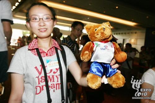 來(lái)自上海的網(wǎng)友張慧珠一家無(wú)疑是今天參觀美國(guó)館的人群中最幸運(yùn)的,他們一家三口全部抽中了“網(wǎng)上世博會(huì)展館直通車”美國(guó)站的參與資格。不過(guò),最讓張慧珠高興的是,她可以和先生、女兒一起享受這種貴賓待遇,“我女兒捧著那個(gè)泰迪熊喜歡得不得了呢!”
