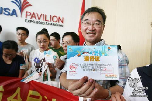 馬丁為網(wǎng)友頒發(fā)“網(wǎng)上世博會(huì)展館直通車”通行證