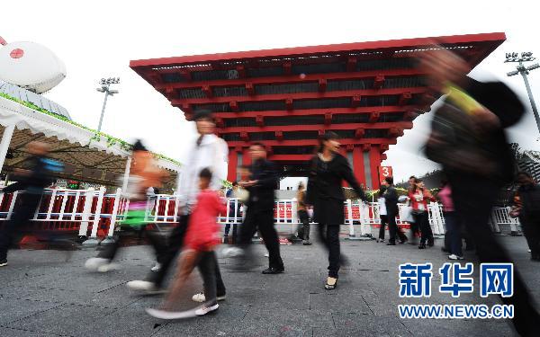 10月24日,游客從上海世博園中國(guó)館前的廣場(chǎng)經(jīng)過(guò)。截至10月24日10時(shí)17分,上海世博會(huì)參觀者累計(jì)突破7000萬(wàn)人次。 新華社記者李健攝