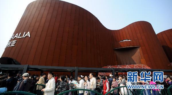 10月31日,游客排隊等候進入澳大利亞館參觀。
