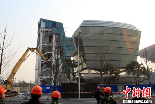 1月9日上午,上海世博會(huì)臺(tái)灣館開始拆除,整個(gè)工程約十多天。中新社記者 潘索菲 攝