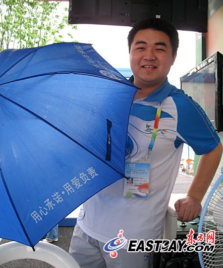 作為浦東園區(qū)最大入口處的志愿者站點(diǎn),汪愛(ài)華和她的同事們已承擔(dān)著相當(dāng)繁重的工作。這些榮獲了六月團(tuán)隊(duì)之星獎(jiǎng)的大小“白菜”們向記者總結(jié)了目前為止游客遇到的主要問(wèn)題,并表示為了應(yīng)對(duì)豪雨驟降,很多志愿者崗?fù)ひ雅鋫淞藧?ài)心漂流傘以供出借,僅6號(hào)門(mén)站每天被外借的數(shù)量在20把左右。