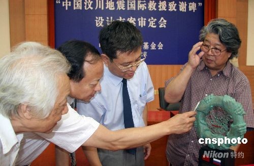 中國人權(quán)發(fā)展基金會當天在北京舉行“汶川地震國際救援致謝碑”設(shè)計方案審定會,由中國雕塑學會名譽會長、中央美術(shù)學院雕塑系教授曹春生領(lǐng)銜設(shè)計的“汶川地震國際救援致謝碑”模型揭開面紗。曹春生介紹說,致謝碑以五雙相握的手支撐起的青銅圓環(huán)為主體造型,寓意世界五大洲心手相連、共抗災(zāi)難,致謝碑基座刻有中國及受贈國國旗,并用兩國語言鐫刻紀念碑文以及受贈國救援或醫(yī)療隊隊員名字。致謝碑總高不小于三米,主體雕塑與基座比例約一比一,一般將選擇放置于受贈國一處戶外的公共場所。