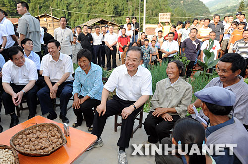 8月31日,溫家寶在青川縣棗樹村視察農(nóng)民永久性住房建設(shè)情況。新華社記者 黃敬文攝
