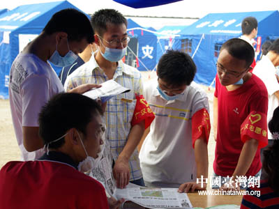 20日下午,臺灣紅十字組織醫(yī)療隊帶約3噸醫(yī)療用品等物資前往廣漢市,21日在高坪鎮(zhèn),23日在體育場救災點設立醫(yī)療救護站,展開救護服務。救護站設有中、西醫(yī)。從21日至24日共計診治476名。對數十名老弱災民進行體檢,做了一臺氣胸手術、兩個骨折手術。和一個頭皮縫合小手術。內、外科,兒科,針灸,急處方發(fā)藥點。巴蜀音像制作中心 蘭志泉 攝