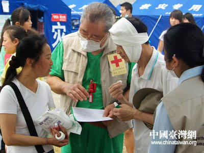 臺灣紅十字組織醫(yī)療隊檢查受災群眾
