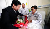 張寶順赴醫(yī)院看望王家?guī)X礦獲救工人