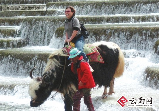 在麗江玉龍雪山,融入自然美景的游客開懷大笑。她情不自禁地喊出心聲:“我愛上云南了!”