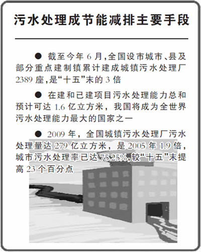 隨著工業(yè)化、城鎮(zhèn)化進程加快,經(jīng)濟快速發(fā)展,人民生活水平不斷提高,污水排放量也在不斷增加。城鎮(zhèn)污水處理事業(yè)的發(fā)展,直接關系到城市公共衛(wèi)生安全與人居環(huán)境質量的改善。“十一五”期間,我國不斷加大對城鎮(zhèn)污水處理設施建設的投資力度,積極引入市場機制,城鎮(zhèn)污水處理事業(yè)進入發(fā)展快車道。截至2010年6月,全國設市城市、縣及部分重點建制鎮(zhèn)累計建成城鎮(zhèn)污水處理廠2389座,總處理能力達到1.15億立方米/日,分別是“十五”末的3倍和2倍。西藏自治區(qū)第一座污水處理廠昌都地區(qū)污水處理廠的建成調試,標志著我國所有省、自治區(qū)、直轄市均已建成城鎮(zhèn)污水處理廠,其中北京、上海、山東、江蘇、浙江、河南、安徽、海南等省(直轄市)實現(xiàn)了縣縣建有污水處理廠。