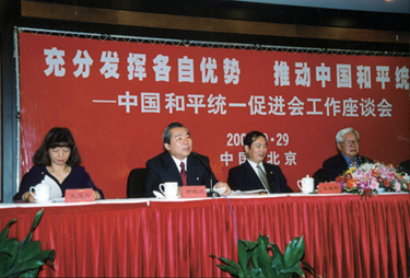 2002年9月29日,來自世界40多個國家和地區(qū)的70多位中國和平統(tǒng)一促進會會長和代表出席了在北京召開的“充分發(fā)揮各自優(yōu)勢 推動中國和平統(tǒng)一”中國和平統(tǒng)一促進會工作座談會。全國政協(xié)副主席、中國和平統(tǒng)一促進會會長羅豪才等出席了座談會。