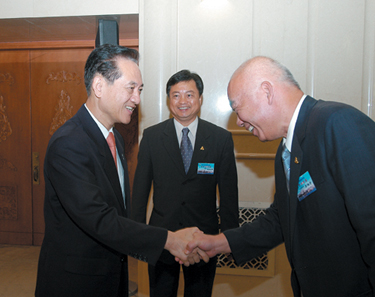 2005年7月8日,臺灣布袋港發(fā)展促進會大陸訪問團在北京拜會中國和平統(tǒng)一促進會,受到全國人大常委會副委員長、中國和平統(tǒng)一促進會副會長韓啟德的親切會見。