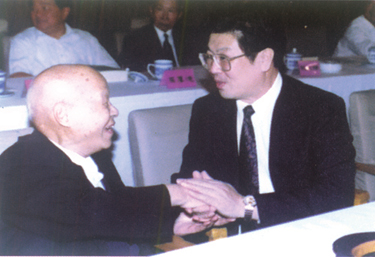 圖2全國政協(xié)副主席、中央統(tǒng)戰(zhàn)部部長王兆國9右)親切慰問孫越崎會長。