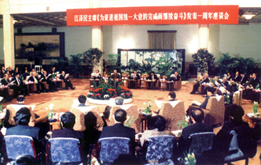 1996年1月30日為紀(jì)念江澤民主席《為促進(jìn)祖國統(tǒng)一大業(yè)的完成而繼續(xù)奮斗》的重要講話發(fā)表一周年,國務(wù)院臺(tái)辦、中國和平統(tǒng)一促進(jìn)會(huì)等單位,在人民大會(huì)堂舉辦座談會(huì)。國務(wù)院總理李鵬發(fā)表了題為《完成祖國統(tǒng)一大業(yè)是全體中國人民的共同愿望》的講話。中國和平統(tǒng)一促進(jìn)會(huì)會(huì)長錢偉長、程思遠(yuǎn)出席了座談會(huì)并發(fā)言。