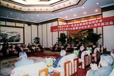 2003年1月28日,中國(guó)和平統(tǒng)一促進(jìn)會(huì)與黃埔軍校同學(xué)會(huì)在中央統(tǒng)戰(zhàn)部禮堂共同舉辦紀(jì)念“江澤民主席對(duì)臺(tái)重要講話發(fā)表八周年”座談會(huì)。全國(guó)政協(xié)副主席、中國(guó)和平統(tǒng)一促進(jìn)會(huì)會(huì)長(zhǎng)羅豪才在座談會(huì)上發(fā)表了講話。