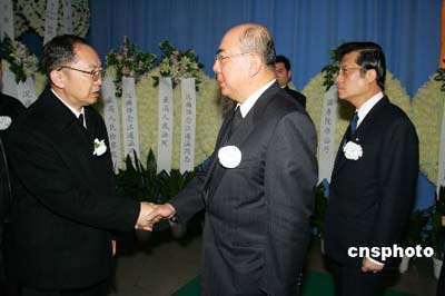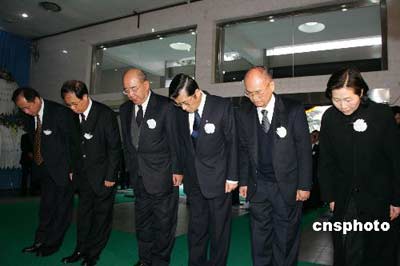 十二月三十日,海峽兩岸關系協(xié)會會長汪道涵遺體告別儀式在上海舉行。中國國民黨副主席吳伯雄代表國民黨及黨主席馬英九和代表國民黨大陸事務部及國民黨榮譽主席連戰(zhàn)的張榮恭等一同前往上海吊唁。作者:潘索菲