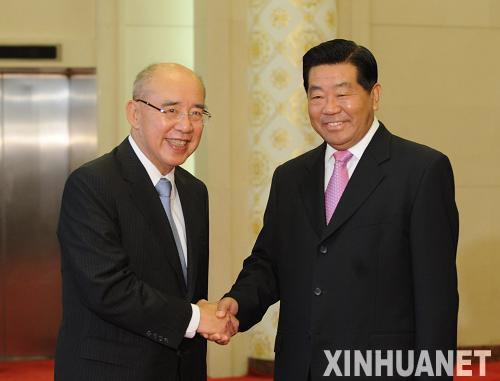 5月25日,中共中央政治局常委、全國政協(xié)主席賈慶林在北京人民大會堂會見中國國民黨主席吳伯雄。新華社記者 李學仁 攝
