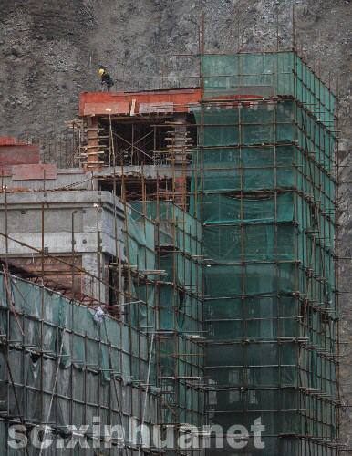 4月18日,工人在汶川一中重建工程施工現(xiàn)場工作。 新華社記者邢廣利 攝