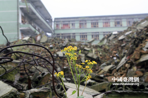 在地震遺址,處處都可見到這樣的黃色小花在廢墟上頑強地生長著。(中國臺灣網(wǎng) 田云鵬 攝)