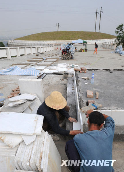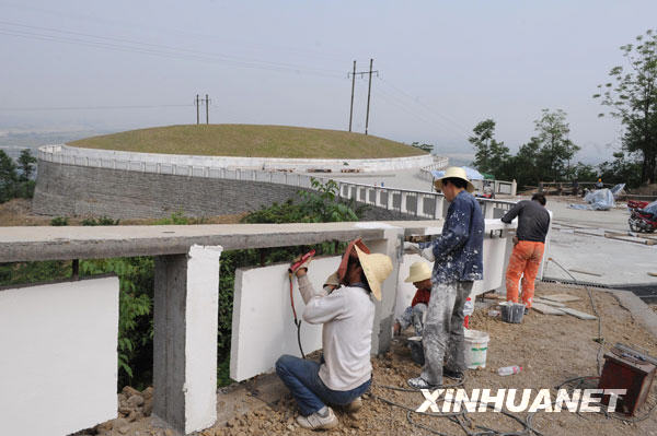 5月3日,工人正在加緊修建漢旺鎮(zhèn)5·12汶川大地震遇難者陵墓。新華社記者陳燮攝 |