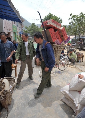 6月2日,北川縣曲山鎮(zhèn)楊柳坪村村民母賢清(左)領(lǐng)到了方便食品。目前,四川省抗震救災(zāi)指揮部物資組對所有救災(zāi)物資的運送、接收、分配、發(fā)放努力做到“三個一定”:一定要有賬,物資來源、數(shù)量、分配方向要登記造冊,做到有賬可查;一定要及時分配,不能積壓;一定要全程跟蹤,防止物資去向不明,保證全部用于受災(zāi)群眾。新華社記者 宋振平 攝