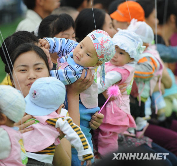 2009年5月13日,在什邡市剛剛落成的由北京援建的北京小學(xué)操場(chǎng)上,108個(gè)“羅漢娃”舉行了集體生日抓周活動(dòng)。許多愛心人士不遠(yuǎn)千里來到現(xiàn)場(chǎng),與寶寶們結(jié)對(duì),拜認(rèn)干爹干媽。