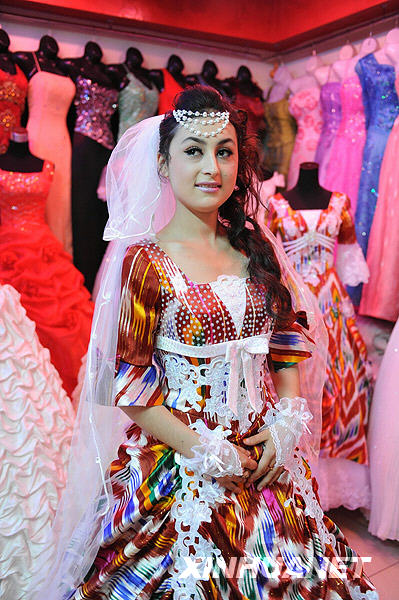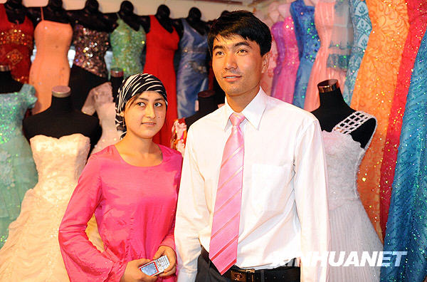 7月20日一大早,維吾爾族新娘阿依加瑪麗就和未婚夫司馬義來到位于烏魯木齊市勝利路上的婚紗城取婚紗照。他們19日在這里選好了結(jié)婚禮服,還拍攝了婚紗照。美麗的新娘阿依加瑪麗和未婚夫已經(jīng)為婚禮籌備很長時間,不久前發(fā)生的“7·5”事件曾令他們擔(dān)心婚禮會不會因此而推遲,現(xiàn)在他們決定婚禮將于8月2日如期舉行。
