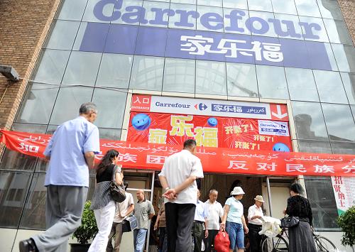 7月23日,家樂福中國西北區(qū)總經(jīng)理謝夫林專程從鄭州趕來為重新開業(yè)的家樂福烏魯木齊大巴扎店助陣。新華社記者 沙達(dá)提 攝