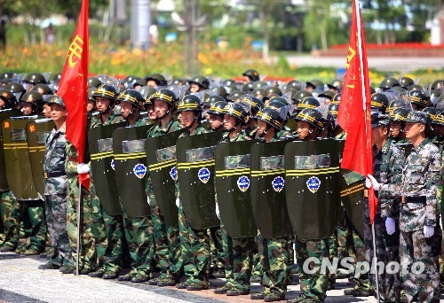 二十八日,千余名民兵預(yù)備役官兵在烏魯木齊市南湖廣場整齊列隊(duì),舉行烏魯木齊民兵預(yù)備役部隊(duì)閱兵式暨入隊(duì)宣誓大會。烏魯木齊“七·五”事件發(fā)生后,該市民兵預(yù)備役部隊(duì)迅速集結(jié),晝夜奮戰(zhàn)在維穩(wěn)斗爭第一線,成為該市維護(hù)社會穩(wěn)定的一支重要力量。