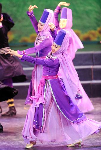 7月29日,新疆藝術(shù)劇院歌舞團(tuán)演員在表演舞蹈《天山腳下是我的家鄉(xiāng)》。新華社記者 沙達(dá)提 攝
