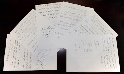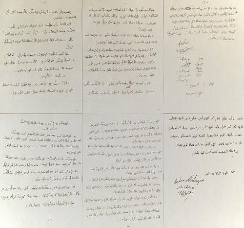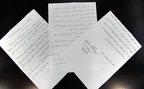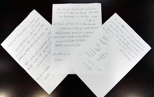 這是熱比婭境內(nèi)親屬分別致熱比婭和烏魯木齊“7·5”事件遇難者家屬的信件(8月2日攝)。熱比婭在境內(nèi)的親屬--兒子卡哈爾、女兒茹仙古麗和弟弟買(mǎi)買(mǎi)提等,近日分別致信熱比婭和烏魯木齊“7·5”事件遇害者家屬,對(duì)熱比婭違背了自己的誓言參與分裂活動(dòng)表示不滿,對(duì)暴力事件表示氣憤,對(duì)無(wú)辜死亡的群眾和他們的家屬表示歉意。新華社記者 丁林 攝