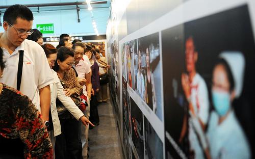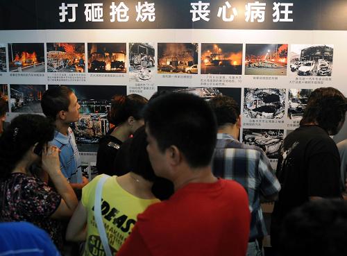 8月6日,觀眾在觀看平息“7·5”事件紀(jì)實(shí)圖片展。 新華社記者 沙達(dá)提 攝