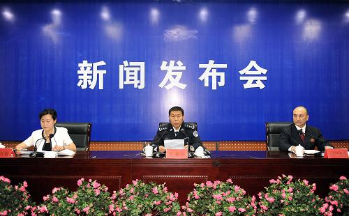 8月4日,新疆維吾爾自治區(qū)公安廳副廳長(zhǎng)、烏魯木齊市公安局局長(zhǎng)陳壯為(中)在新聞發(fā)布會(huì)上通報(bào)“7.5”打砸搶燒事件偵查進(jìn)展情況。截至8月4日,烏魯木齊公安機(jī)關(guān)已刑事拘留“7·5”打砸搶燒事件犯罪嫌疑人718名,目前案件的偵破工作仍在緊張進(jìn)行中。 新華社記者 沙達(dá)提 攝