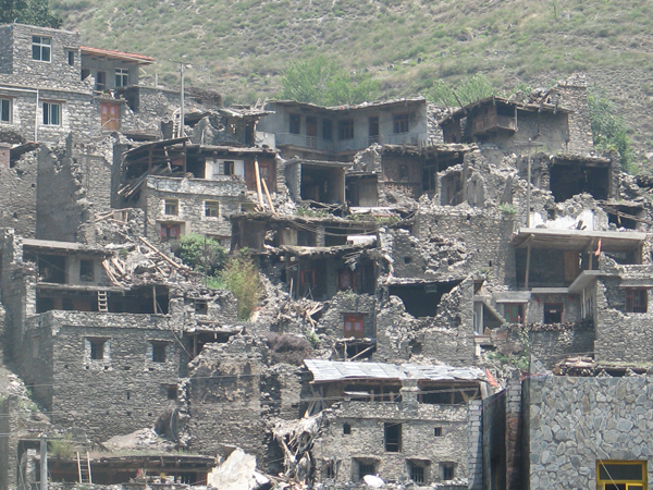 2008年7月10日,四川青年志愿者戴濤在汶川地震中心附近的甘堡藏寨拍攝的受災(zāi)寨子。