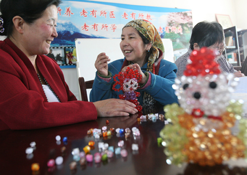 5月21日,社區(qū)工作人員在指導米娜娃爾制作手工藝品。烏魯木齊市沙依巴克區(qū)雅瑪里克山管委會殘疾人“陽光家園”自2009年11月成立以來,每天免費托管9名智殘人員在此接受認字、繪畫等輔助康復訓練。據(jù)了解,該家園還將啟動居家托養(yǎng)服務,使更多殘疾人受益。