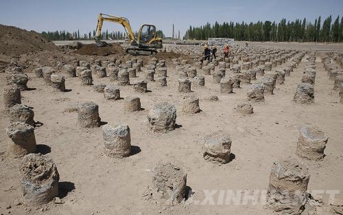 5月10日,建設(shè)者在蘭新鐵路第二雙線新疆哈密段一處軟土地基礎(chǔ)坑現(xiàn)場施工。
