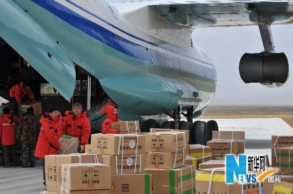 4月15日,救援隊(duì)員在青海玉樹(shù)巴塘機(jī)場(chǎng)卸載救災(zāi)物資。 新華社發(fā)