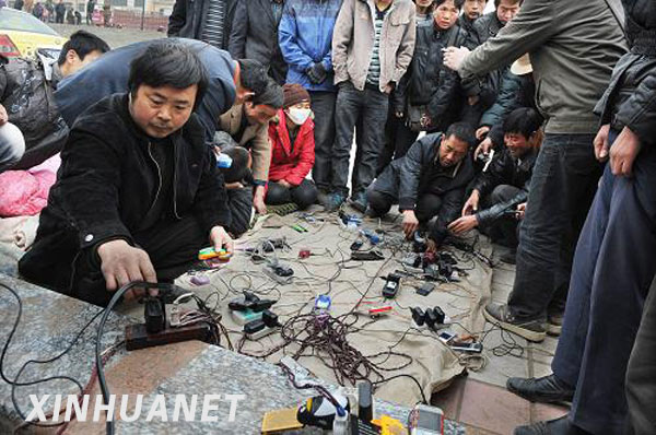 4月16日,唐全(前左一)在為手機(jī)充電。新華社記者 李紫恒攝 一場(chǎng)地震劫難,讓滋潤(rùn)整個(gè)神州的“三江源”滿目瘡痍,遍地廢墟。 一場(chǎng)生死救援,讓災(zāi)區(qū)的人民感受到無比的溫暖,創(chuàng)造著一個(gè)又一個(gè)奇跡。 與時(shí)間競(jìng)速,和生命賽跑。在黃金救援期的第三天,全體中國(guó)人用行動(dòng)書寫著對(duì)生命的尊重,彰顯了真情的無價(jià)。 生命大搜救 國(guó)際救援經(jīng)驗(yàn)表明,地震發(fā)生后的72小時(shí)是最關(guān)鍵的“黃金救援時(shí)間”。 4月16日,玉樹地震救援進(jìn)入第三天,“黃金救援72小時(shí)”正一分一秒地?zé)o情流逝。在搜救現(xiàn)場(chǎng),不少群眾翹首企盼新的生命奇跡出現(xiàn)。 沖刺,為了生命的奇跡。從黨中央、國(guó)務(wù)院到各地方各部門,從解放軍、武警部隊(duì)、消防官兵到公安民警,從專業(yè)救援隊(duì)到普通志愿者,從各級(jí)領(lǐng)導(dǎo)干部到廣大人民群眾……每一個(gè)人都在爭(zhēng)分奪秒,每一個(gè)人都在與死神賽跑。 4月15日下午,中共中央政治局常委、國(guó)務(wù)院總理溫家寶飛抵青海玉樹地震災(zāi)區(qū)。他指出,當(dāng)前,抗震救災(zāi)第一位的工作是救人。只要有一絲希望,就要盡百分努力,堅(jiān)持下去,決不放棄。 快、快、快!多爭(zhēng)取一秒就可能多搶救一個(gè)生命。 “我們的官兵們有的是剛拔了吊瓶,有的是剛剛嘔吐完,就立即趕往搜救現(xiàn)場(chǎng),由于在高海拔環(huán)境下晝夜奮戰(zhàn),很多人已經(jīng)接近體力的極限。”青海消防總隊(duì)蘭州支隊(duì)的一個(gè)戰(zhàn)士剛剛從一個(gè)救援地點(diǎn)撤下來,嘴唇?jīng)]有血色,眼中滿是血絲,來不及向記者多說一句話,就匆匆趕往下一個(gè)傳出有生命跡象的救援地點(diǎn)。 一根根木樁被撬起,一塊塊礫石被挖出,一個(gè)個(gè)身影在閃動(dòng)。16日,來自全國(guó)各地的近百支搜救隊(duì)在廢墟里展開拉網(wǎng)式排查,克服高原高寒和連續(xù)作戰(zhàn)等重重困難,突破體力和意志極限與時(shí)間賽跑,以期尋找生命的奇跡。 快、快、快!多付出一份努力就多一份生的希望。