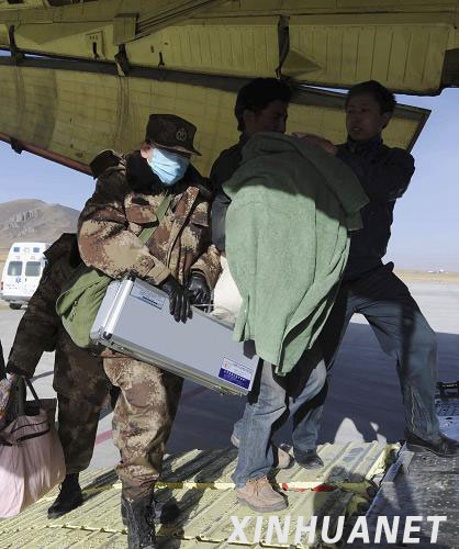 一個多小時后,記者轉(zhuǎn)乘的傷員運輸機降落在玉樹機場,遍地的迷彩讓人為之一振。
