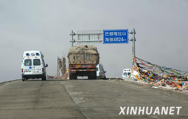 4月16日,救護車行駛在海拔4824米的巴顏喀拉山口。目前,來自全國各地的大批救援物資正源源不斷地向地震災(zāi)區(qū)輸送。214國道西寧至玉樹的800余公里公路成為向災(zāi)區(qū)輸送物資的生命線。記者歷時15個小時,從西寧乘車前往玉樹,目擊了這條生命線的繁忙景象。新華社記者 丁海濤 攝