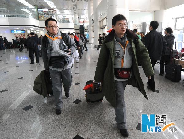 4月15日,醫(yī)療隊(duì)員在北京南苑機(jī)場準(zhǔn)備出發(fā)。當(dāng)日,北京第一批急救醫(yī)療隊(duì)趕赴青海玉樹地震災(zāi)區(qū)開展救援。急救醫(yī)療隊(duì)由來自北京大學(xué)第一醫(yī)院、北京大學(xué)第三醫(yī)院、北京大學(xué)人民醫(yī)院、北京積水潭醫(yī)院、北京朝陽醫(yī)院、北京兒童醫(yī)院和北京急救中心的60余名醫(yī)護(hù)人員組成,包括臨床骨科、普外、腦外、腎內(nèi)、胸外等專業(yè),同時(shí)攜帶近8噸的急救物資和生活用品。新華社記者李文攝