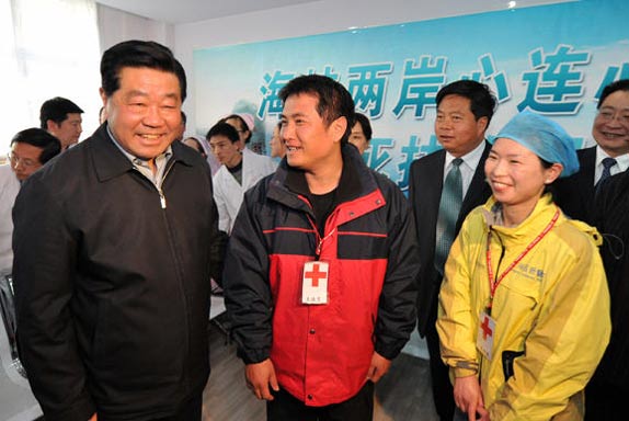 賈慶林看望臺灣醫(yī)療救援隊成員代表胡錦濤總書記向臺灣醫(yī)療救援隊全體成員表示誠摯感謝