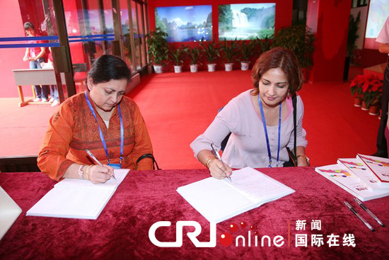 圖為印度學(xué)者在參觀后留言