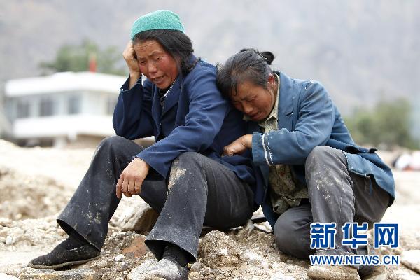 8月19日,兩名婦女在曾經(jīng)的家園上哭泣,悼念親人。甘肅舟曲泥石流發(fā)生已過10余天,遭受泥石流重創(chuàng)的舟曲縣城月圓村廢墟上依然聚集著失去親人的人們。由于泥石流災(zāi)害的特殊性,很多親人的遺骸至今仍未找到。失去親人的人們在廢墟上或守望、或等待、或搜尋、或茫然、或佇立、或祭奠、或哭泣.....悲痛縈繞在人們的心頭,都是源自對親人不能忘卻的懷念。新華社記者 任正來 攝
