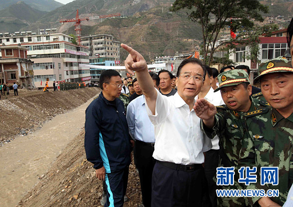 8月21日至22日,中共中央政治局常委、國務(wù)院總理溫家寶再次來到舟曲災(zāi)區(qū),看望受災(zāi)群眾,慰問堅(jiān)守救災(zāi)一線的部隊(duì)官兵,實(shí)地指導(dǎo)搶險(xiǎn)救災(zāi)和恢復(fù)重建工作。這是8月22日,溫家寶來到受災(zāi)嚴(yán)重的舟曲縣羅家峪,了解應(yīng)急抗洪明渠搶修進(jìn)展情況,研究下一步救災(zāi)措施。新華社記者 劉衛(wèi)兵攝