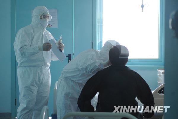 地壇醫(yī)院是北京收治甲型H1N1流感病例定點醫(yī)院,在其感染二科隔離的都是接觸甲型H1N1流感疫區(qū)來京后發(fā)熱或是與確診病例有密切接觸后發(fā)熱,需要進行醫(yī)學觀察者。這里每新接治一位發(fā)熱患者,醫(yī)護人員都會在第一時間取其咽拭子標本進行病原學檢測,如果檢測結果均為陰性,即可排除發(fā)熱者染疫可能,只待患者病情痊愈,即可出院。如果被診斷為疑似或者確診病例,則被轉運至ICU隔離病房。新華社記者 李文攝